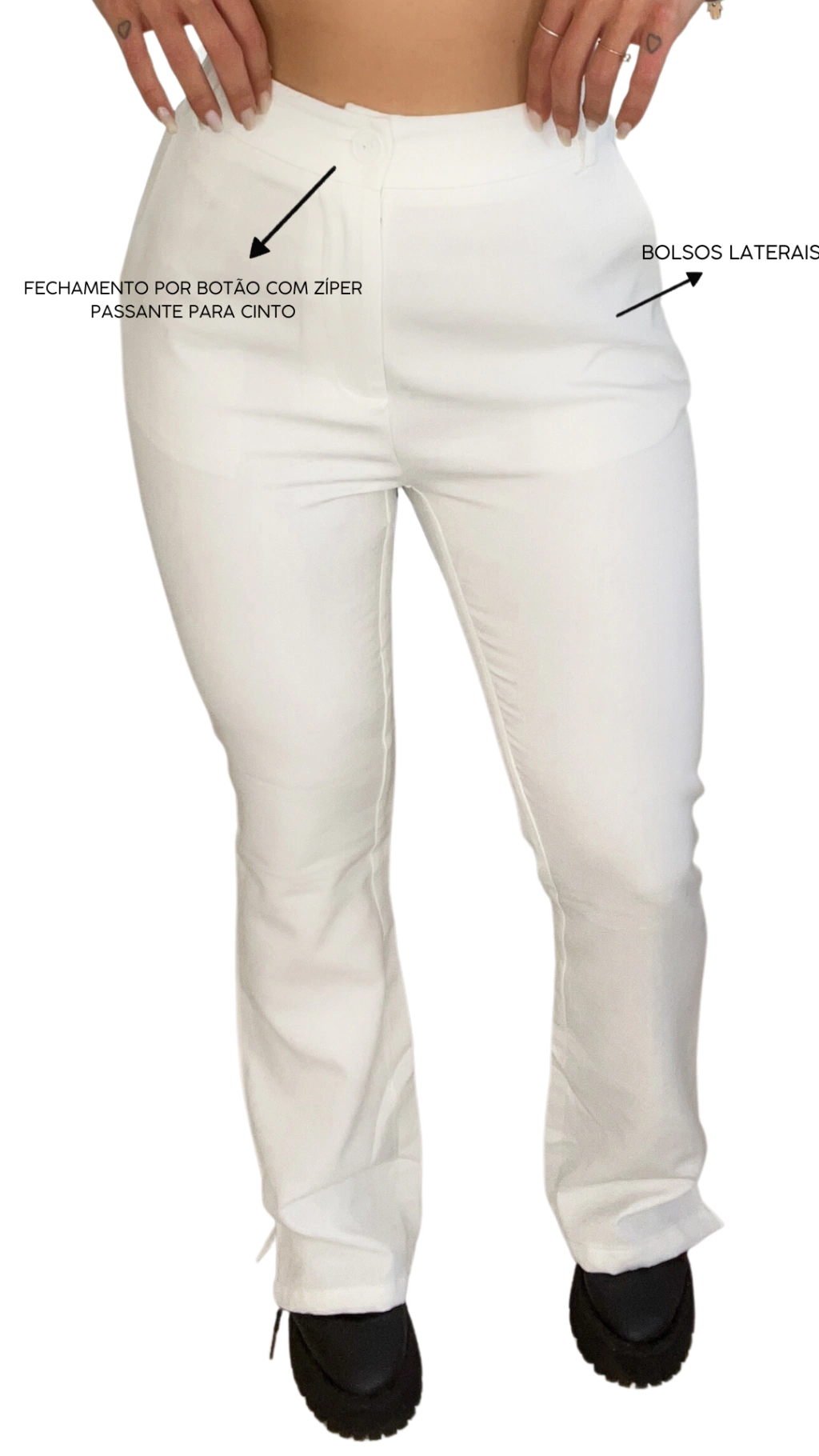 DESCRÇÃO: A calça Flare é a tendencia que você precisa para o seb armário no inverno, com o shape slim ela é elegante e desenha seu corpo! perfeita para muitas ocasiões e nos permite muitos looks, usando ela como base!