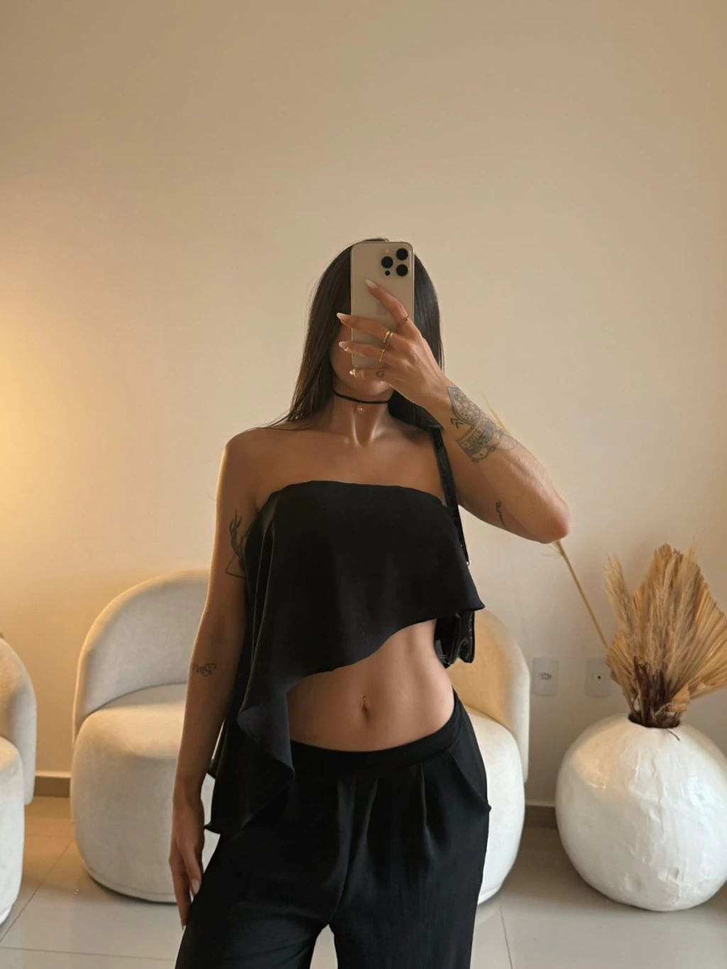DESCRIÇÃO: a combinação perfeita para quem busca conforto e estilo em uma só peça. O top valoriza a silhueta com seu caimento moderno, enquanto a calça larga oferece liberdade de movimento e elegância casual.